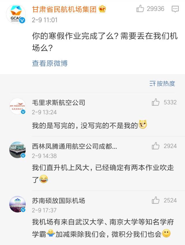 事情的起因是这样的,2月9号甘肃省民航机场集团发微博称:“各位旅客,如果您不慎将寒假作业遗失在机场内或机舱内,我们会在第一时间帮您找回,请勿无效投诉。这个锅,我们不背!”