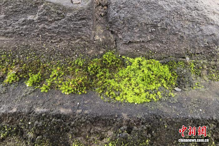 记者在西安城墙上看到,青苔呈现出深浅不一的绿色,并且密密麻麻地附着着。到达城墙表面。远远望去,城墙就像披上了一层“绿色”,吸引了不少人拍照、“打卡”。这一现象也引发了公众对莫斯是否会对城墙造成破坏的担忧。