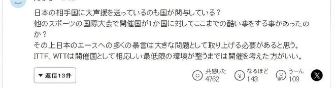 12月7日,在成都混合团体世界杯决赛中,中国乒乓球队以8:1击败日本队,成功卫冕,实现赛事三连冠。然而,赛后日本社交媒体上的愤怒抗议几乎盖过了比赛本身的讨论。日本粉丝指责中国观众在社交媒体上存在偏见,甚至有不良行为。两条线路获得高度评价。意见要求国际乒联重新审视成都是否适合继续举办国际赛事。混合团体世界杯在成都举行。作为2028年洛杉矶奥运会新项目的重要训练场,该赛事吸引了世界顶尖队伍参赛。中国队整场比赛展现出强大的实力,以11胜的成绩夺得冠军。决赛中,王楚钦/孙颖哈、王曼昱、林诗栋分别击败对手,帮助中国队以8:1获胜。赛后,W昂曼昱表示“感受到了中国网球队的力量”,林诗栋感谢球迷的热情支持;然而,比中国队的胜利更引人关注的是日本队整场比赛所经历的“特殊气氛”。只要有日本队的比赛,几乎所有在场的中国观众都会认同。对手压倒性支持日本队的争议主要围绕日本选手张智和展开。这位祖籍四川、父母都是前中国网球运动员的中国选手,在自己的“家乡”找到了比赛的伙伴环境。对阵香港队的比赛结束后,常本智在看台上做出“倾听”的手势,引起了多名观众的围观。为了挑衅,会引发更大的嘘声;此前,张本智和私下表示“感觉自己要被杀了,需要保镖”,语气委屈因。在日本队与法国队的比赛中,明显有人在为法国队加油,为日本队加油。除了场上的喧嚣之外,赛前的一桩小插曲更是让冲突进一步升级。在日本队对阵韩国队的比赛中,主持人不小心两次提到张本智和的名字,导致他拒绝入场。直到第三次正确说出自己的名字,他才进去。这起事件被日本媒体广泛报道。一些日本球迷认为这是不尊重的表现。甚至有人评论说“我们应该写信给国际乒联,问问国际乒联成都是否有资格继续举办国际比赛”。日本媒体《Cocokara》为张智和发声,认为他遭到了极大的“仇恨”。连法国玩家都觉得张智和很仁慈。报道指出,比赛期间再次出现噪音干扰法国队让他无法集中注意力。这场混乱的背后是体育与政治交织的复杂背景,其中包括日本首相高市早苗在台湾问题上的不实言论。 ,被认为是中日关系紧张的触发因素之一,而这种情绪直接在江湖上蔓延;张本智和的特殊身份使他成为矛盾的焦点。一方面,他在2025年WTT横滨锦标赛击败中国选手王楚钦后大喊“这是日本人的胜利”;另一方面,由于他的“归化”身份,他并没有被日本完全接受。