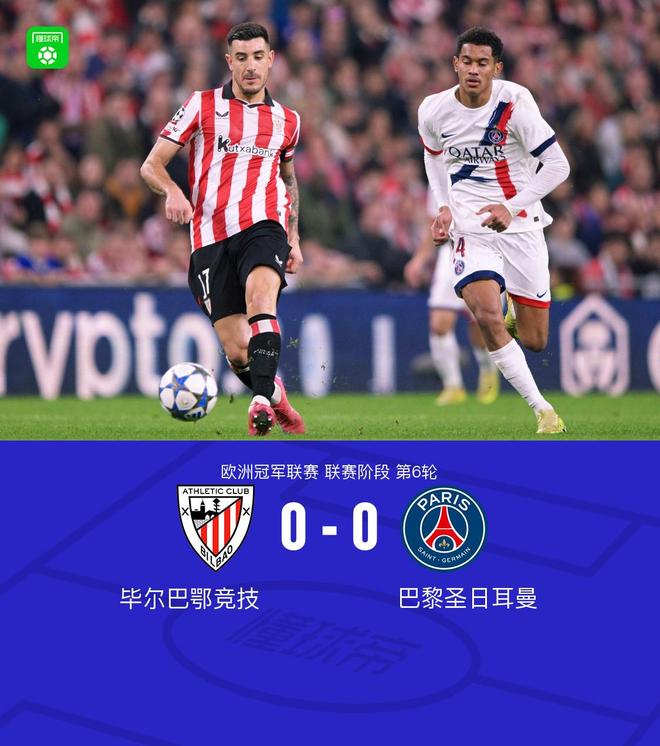 北京时间12月11日下午4点,欧冠联赛第六轮比赛中,巴黎圣日耳曼作客圣马梅斯球场挑战毕尔巴鄂竞技队。裁判是希伯特。上半场,马尤鲁的近距离射门被乌奈·西蒙扑出。下半场,乌奈·西蒙多次做出精彩扑救,巴科拉绝佳机会击中横梁。最终,巴黎0-0战平毕尔巴鄂竞技。第3分钟,双方球员上场。战斗即将开始。扎伊尔·埃梅里禁区内低射,皮球偏出立柱。第19分钟,巴黎反击。法比安·鲁伊斯射门。第29分钟,豪雷·古扎尔断球后推射。进球后,皮球偏出门柱。第30分钟,贝伦格尔主罚定位球攻门。萨福诺夫前来救援。第37分钟,法比安·鲁伊斯禁区内停球,射出高射。第41分钟,马玉露进入禁区小角度射门。球没有击中门柱。第45分钟,马尤鲁近距离射门。乌奈·西蒙前来救援。第46分钟,扎巴尔尼替补登场,换下马尔基尼奥斯。第49分钟,马尤鲁无人盯防射门,乌奈西蒙再次扑出。第53分钟,扎伊尔·埃梅里大力头球攻门,乌奈·西蒙再次精彩扑救。第64分钟,巴黎圣日耳曼配合出色。巴科拉突破防守,击中横梁。第87分钟,法比安·鲁伊斯继续射门,两人均被卡尔维特解围 球队阵容 技术统计